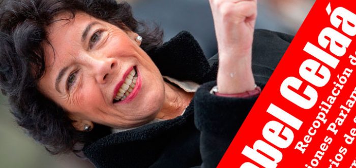 Deixo hoxe aquí a recopilación de todas as intervencións realizadas por Isabel Celáa, como ministra de Educación e Formación Profesional, no Congreso e no Senado, un documento que creo pode ser de gran interese para todas aquelas persoas relacionadas co ámbito da educación no noso país.