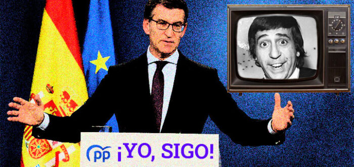 É o Núñez Feijóo do eu sigo! coa estratexia de Pablo Casado de deslegitimar desde o minuto cero o goberno de Pedro Sánchez, que é o mesmo que tratar de deslegitimar unhas eleccións democráticas e á democracia en si mesma, sen importarlle as consecuencias que devandita postura implica e que ben podemos ver no asalto ao Capitolio ou no recente episodio protagonizado en Brasil polos seguidores de Bolsonaro.